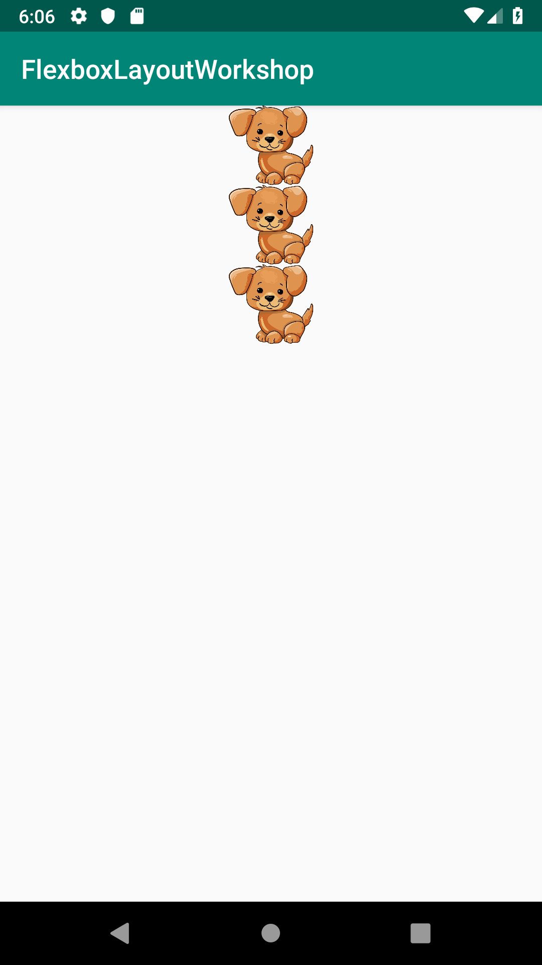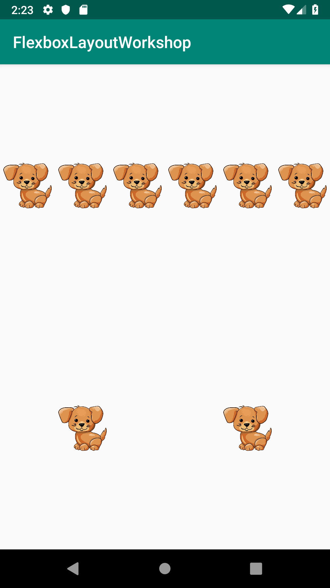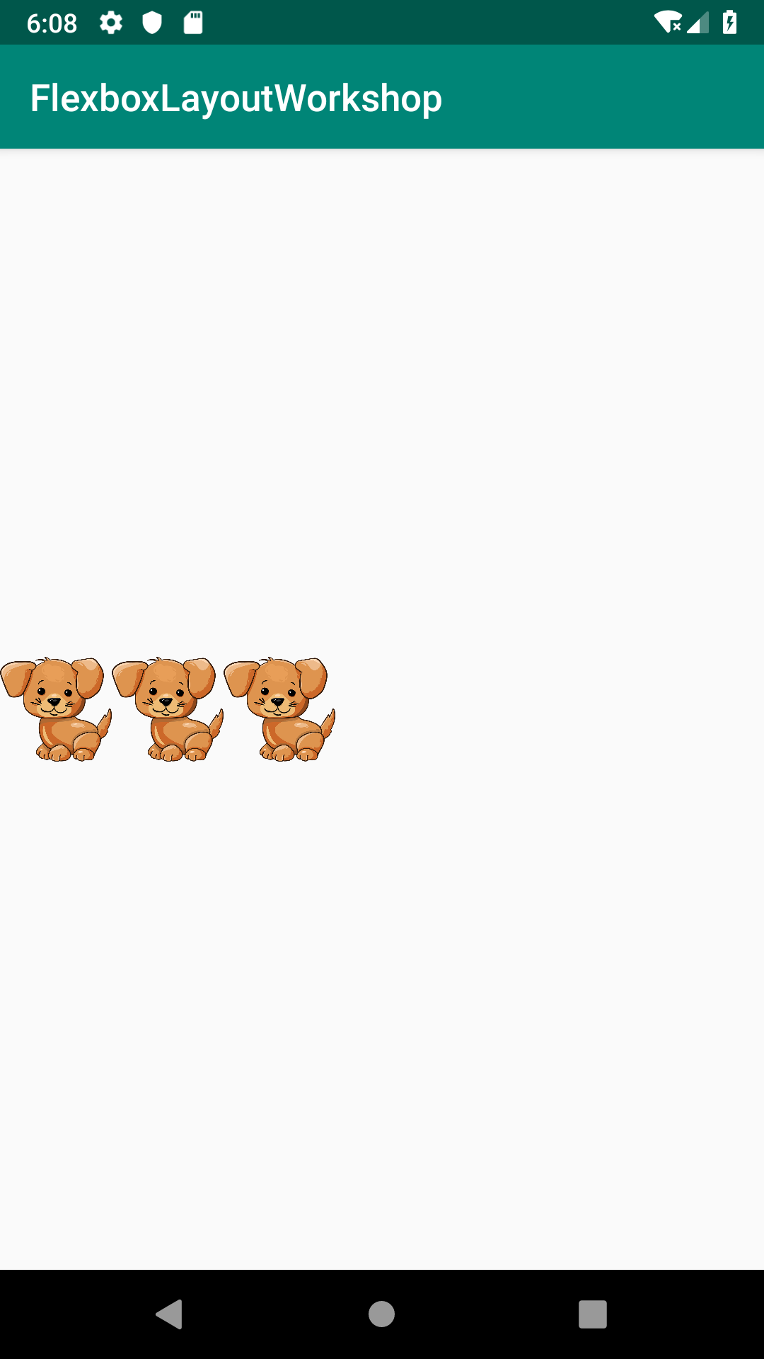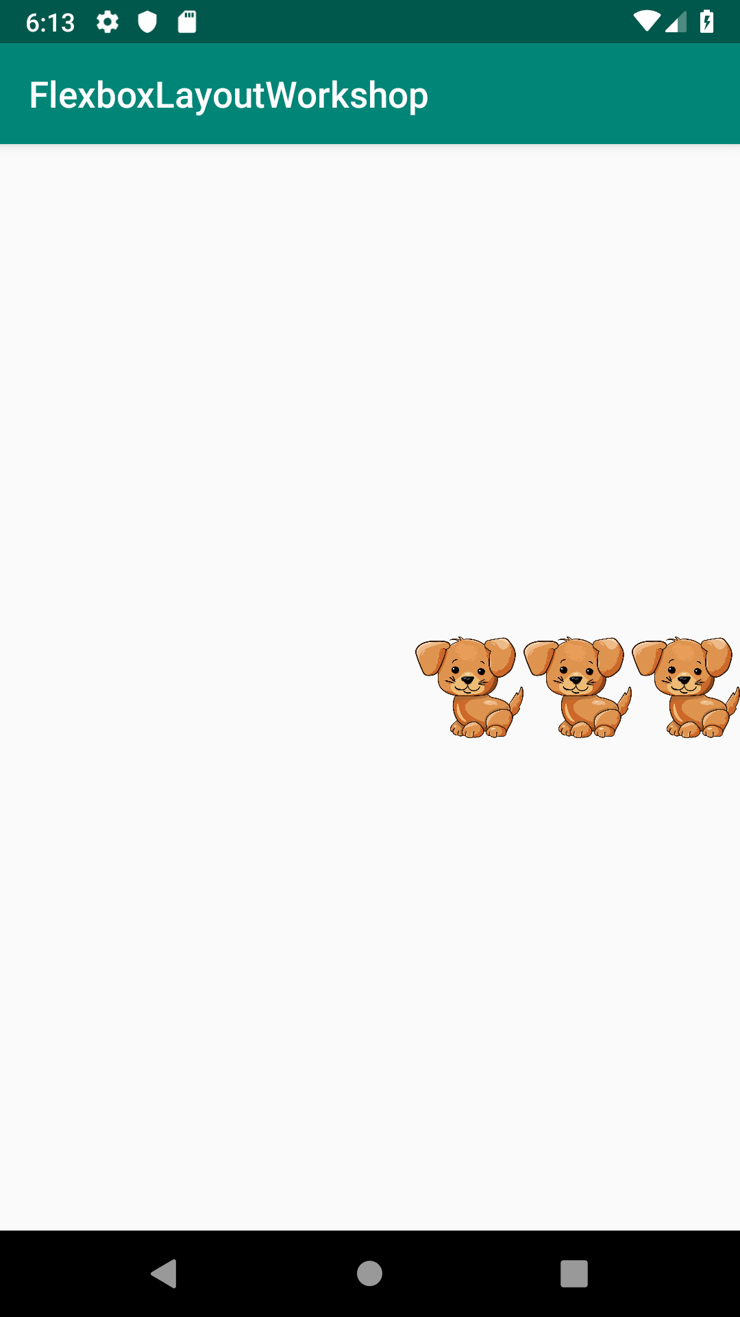 Add 3 ImageViews with a nice dog image as direct sons of the FlexboxLayout.