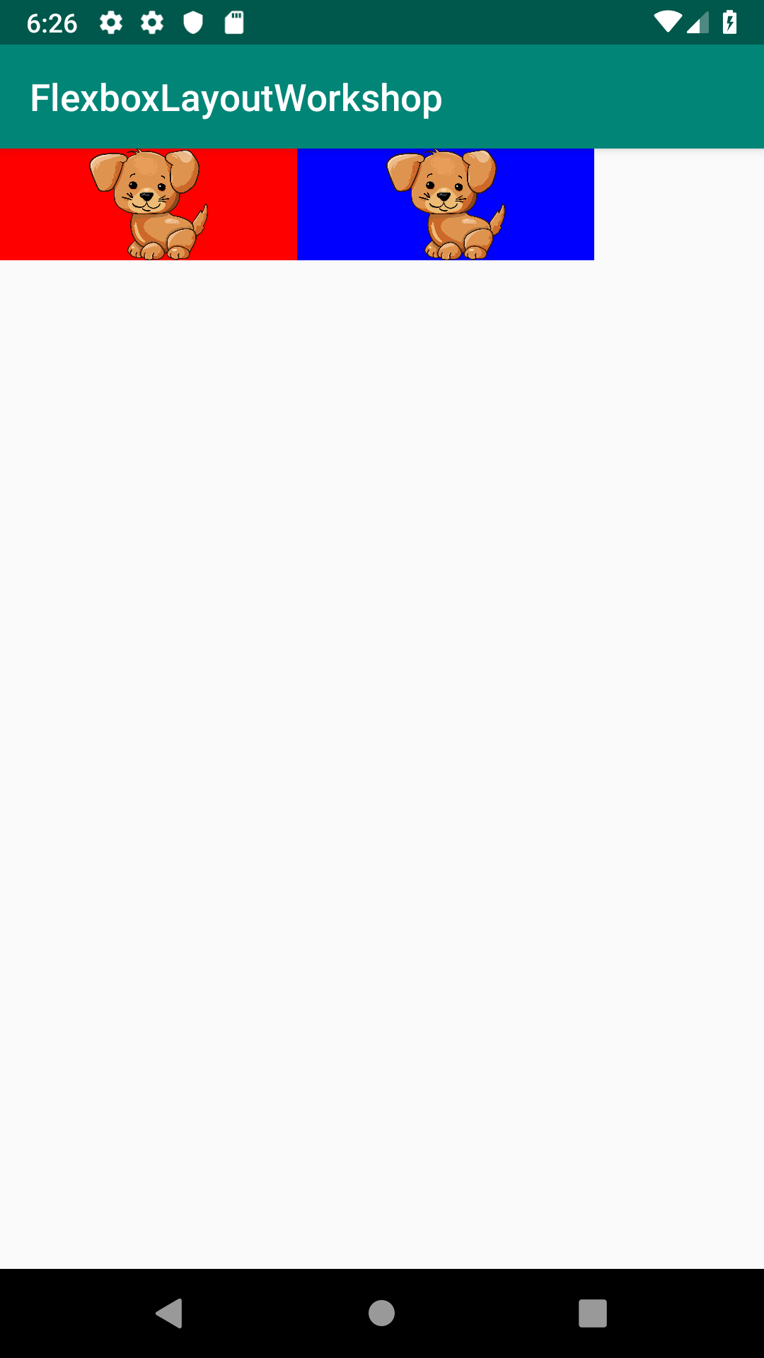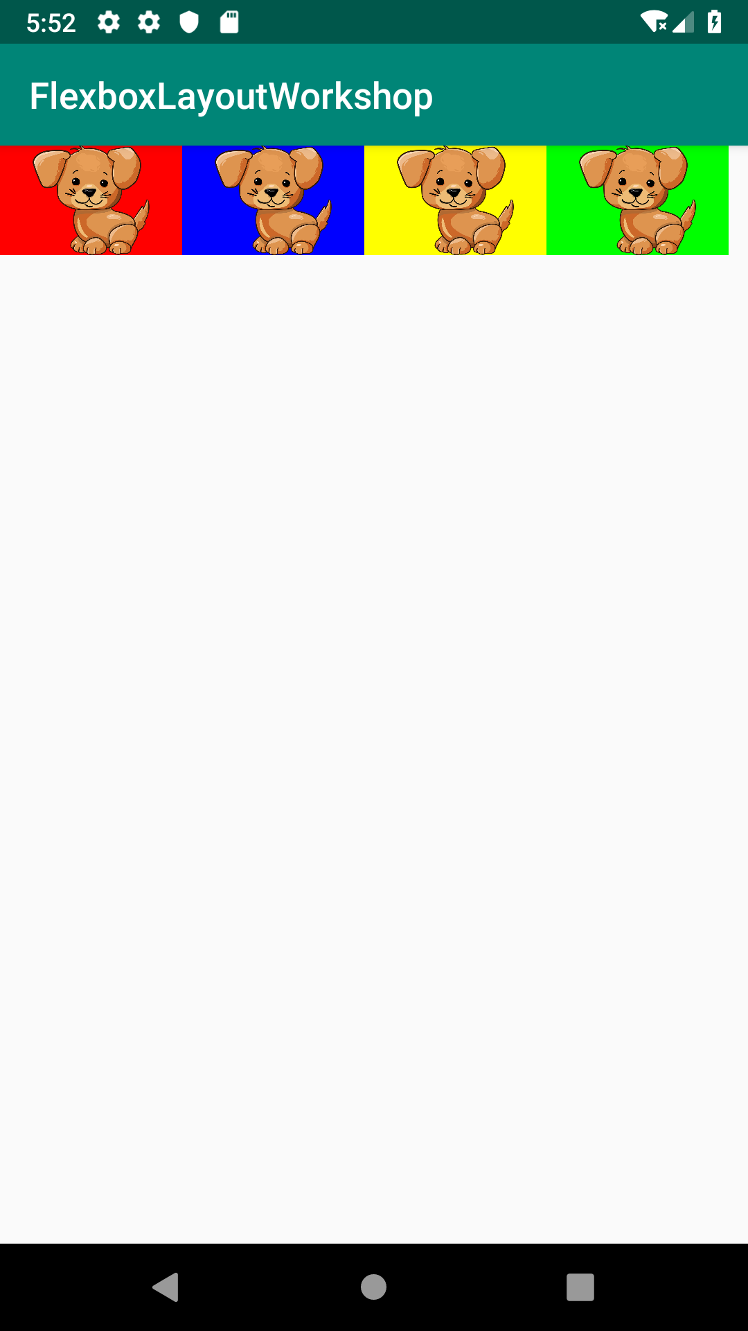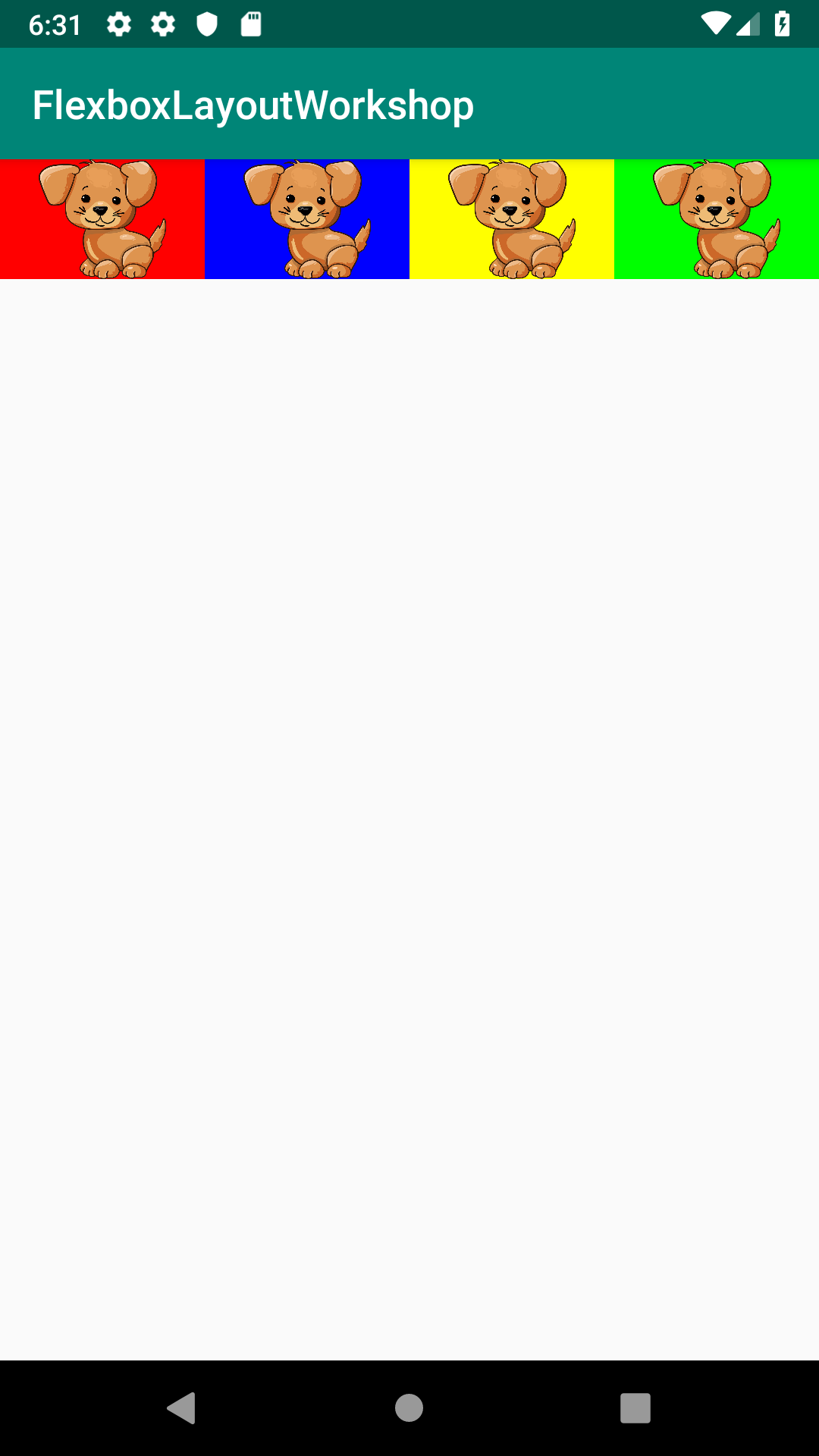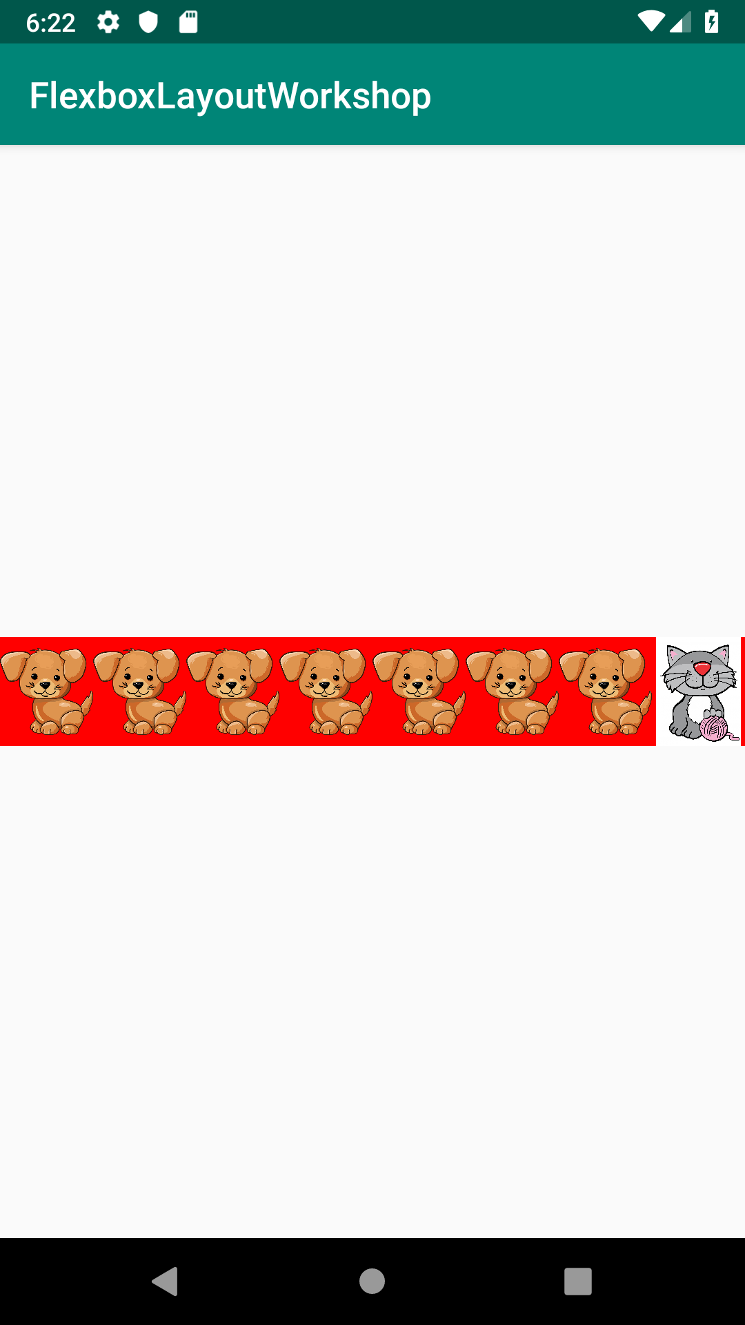 Add 3 ImageViews with a nice dog image as direct sons of the FlexboxLayout.
