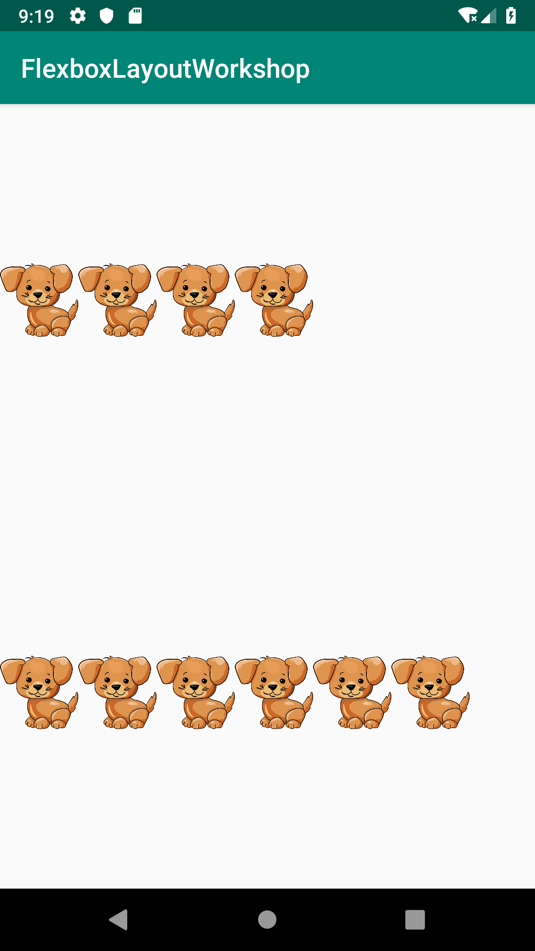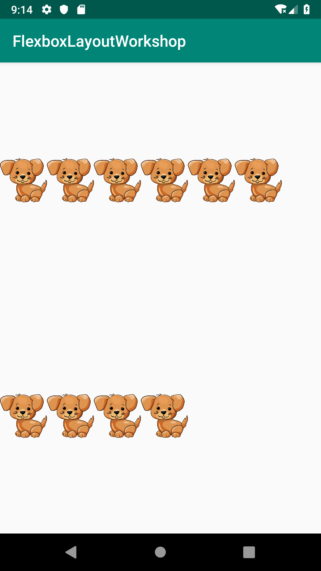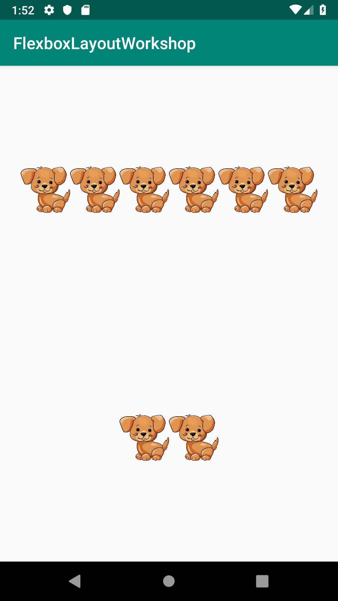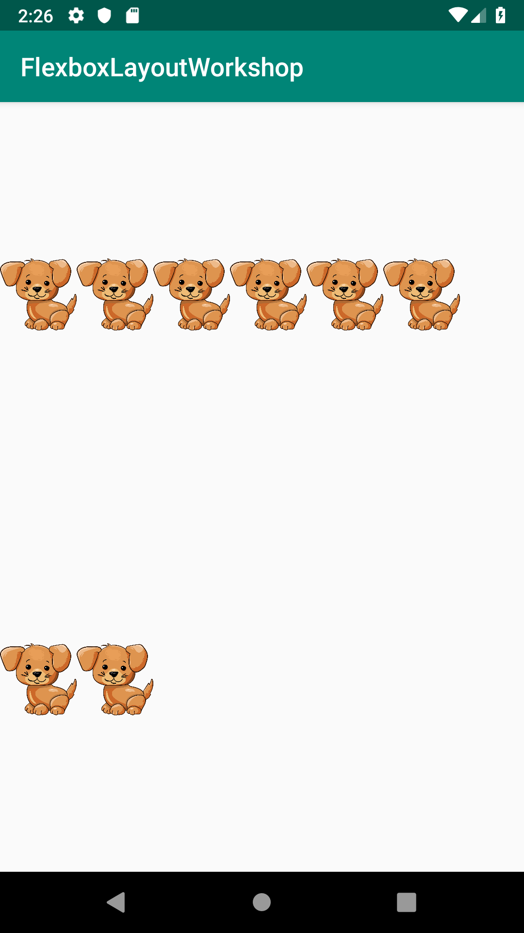 For the next step, delete tow of your nice little doggies ImageViews, and change the flexwrap to wrap