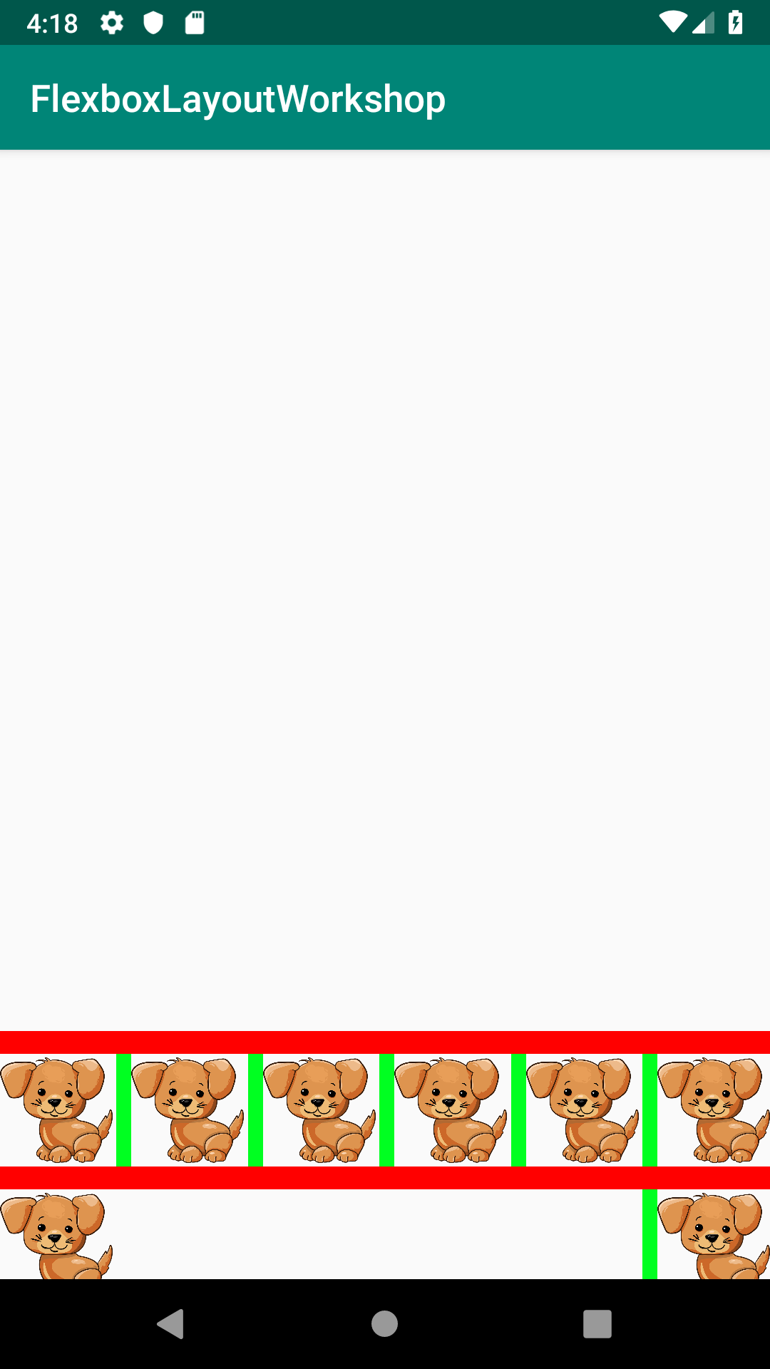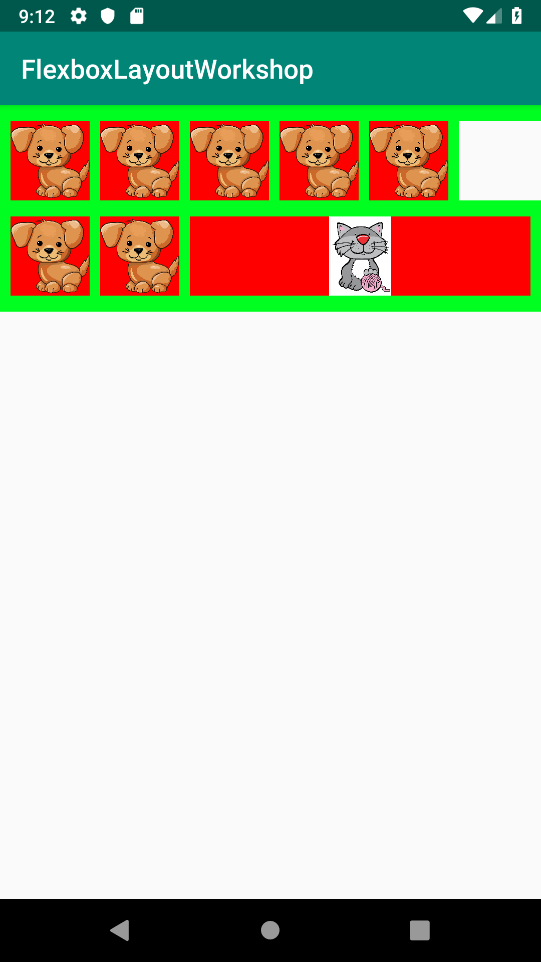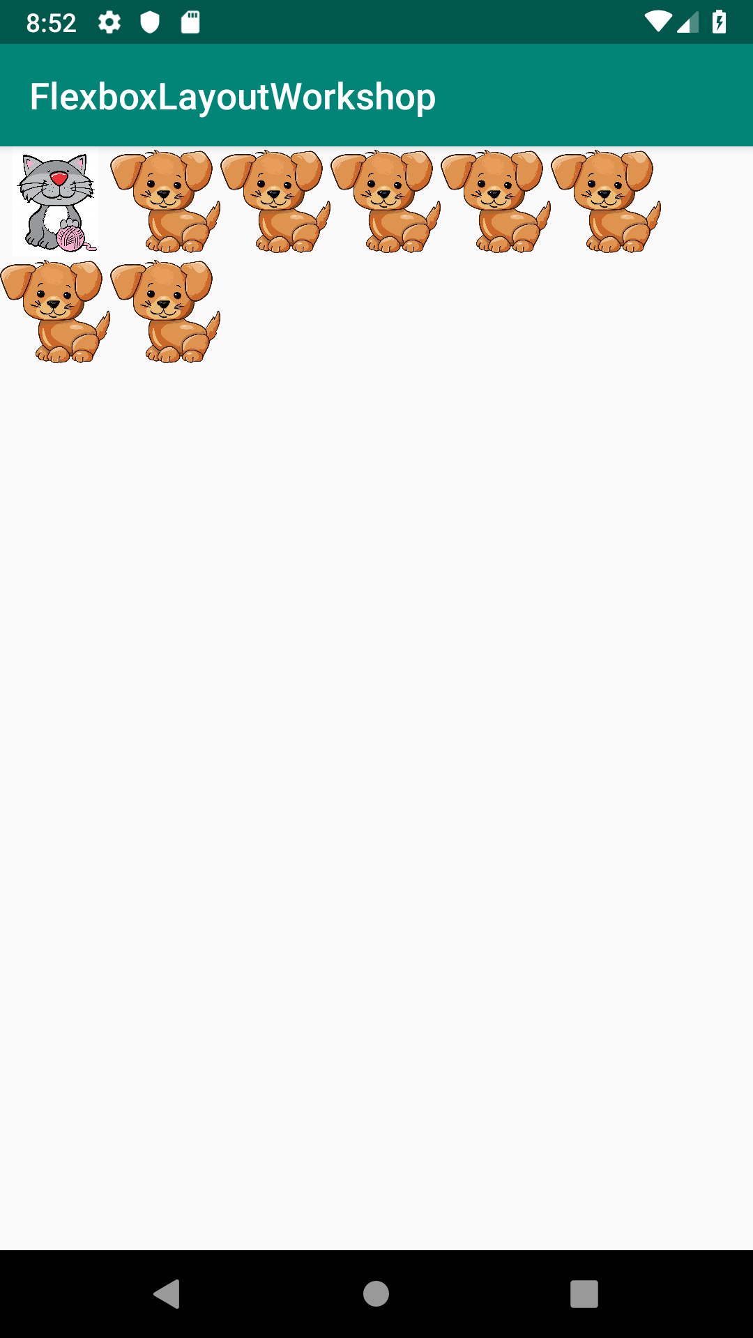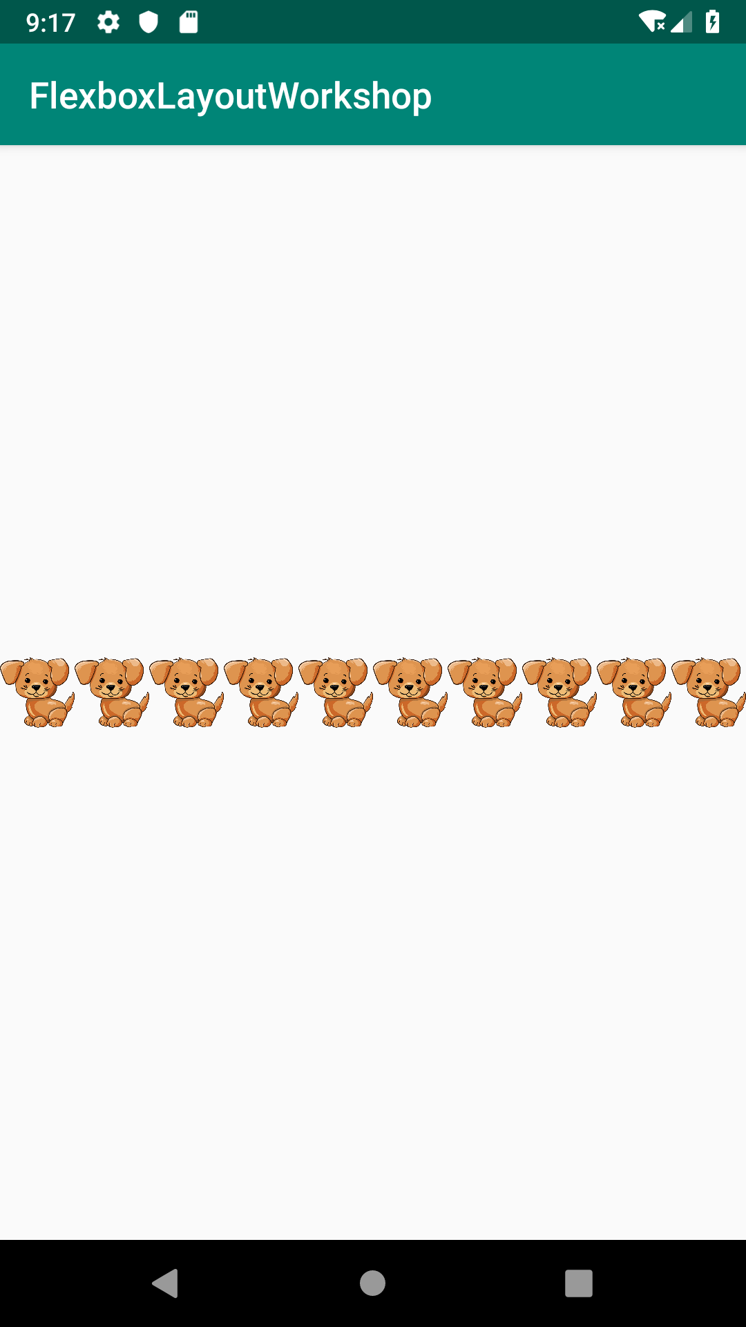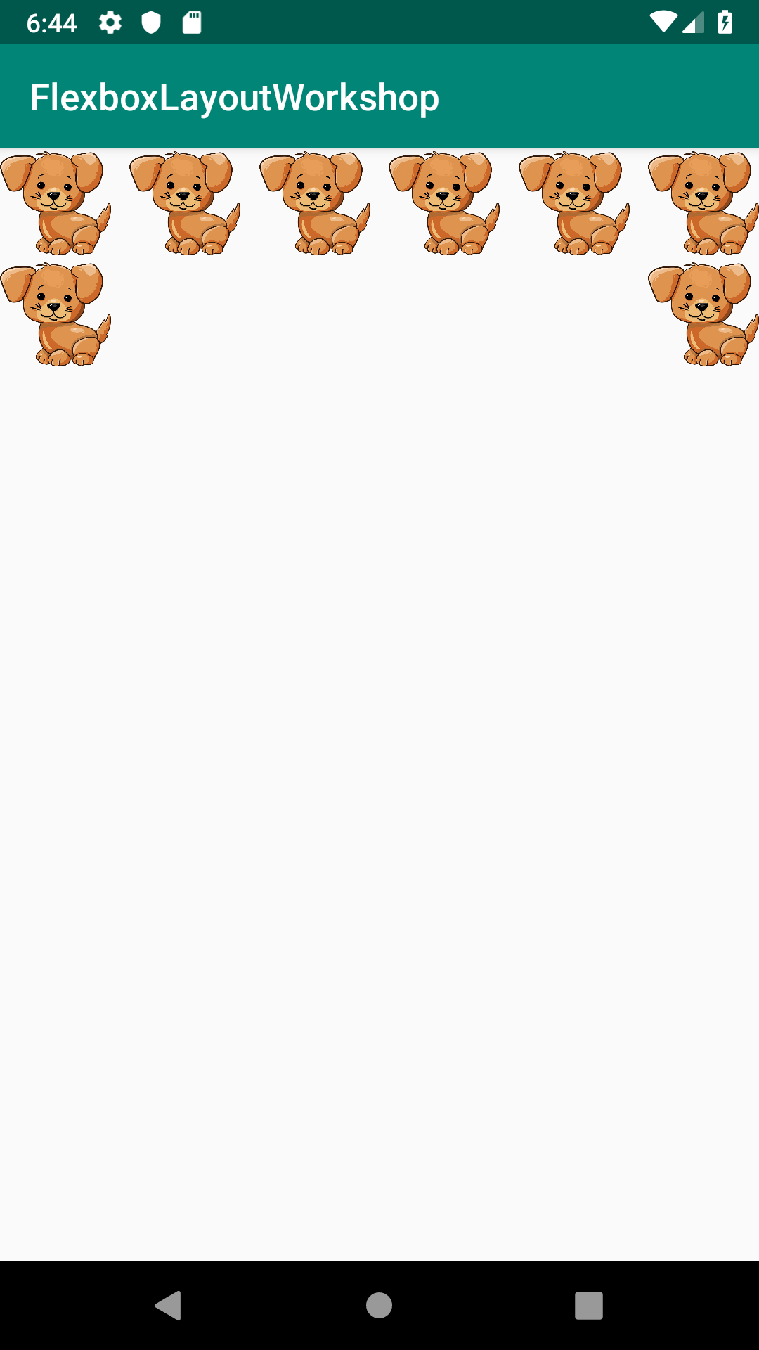 For the next step, delete tow of your nice little doggies ImageViews, and change the flexwrap to wrap