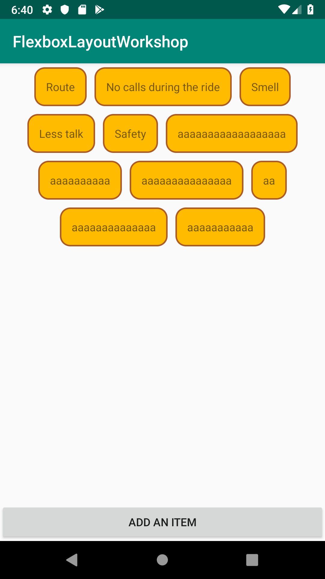 Bare in mind that we are demonstration only part of the permutations that FlexboxLayout has to offer since we already used :