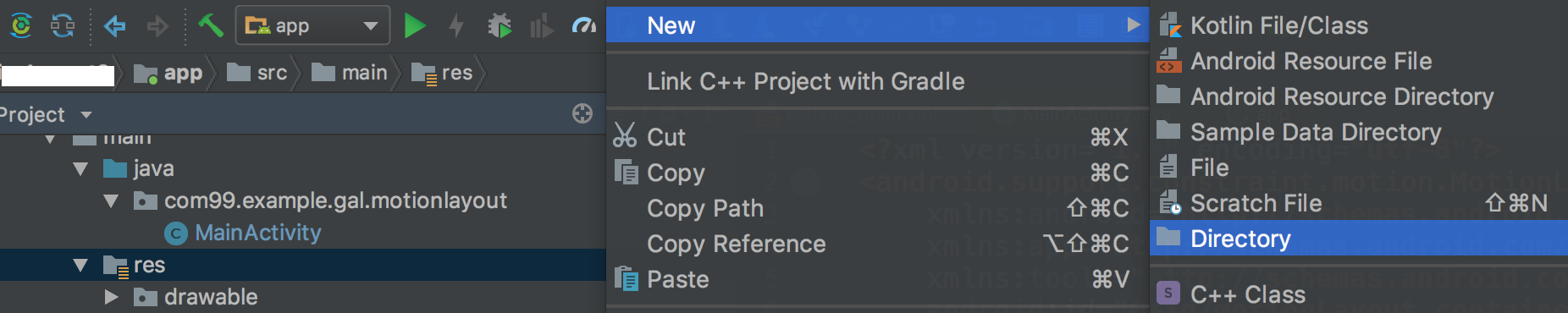 activity_main.xml, and add the following line into your MotionLayout root view : app:layoutDescription="@xml/scene_01"