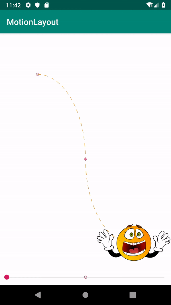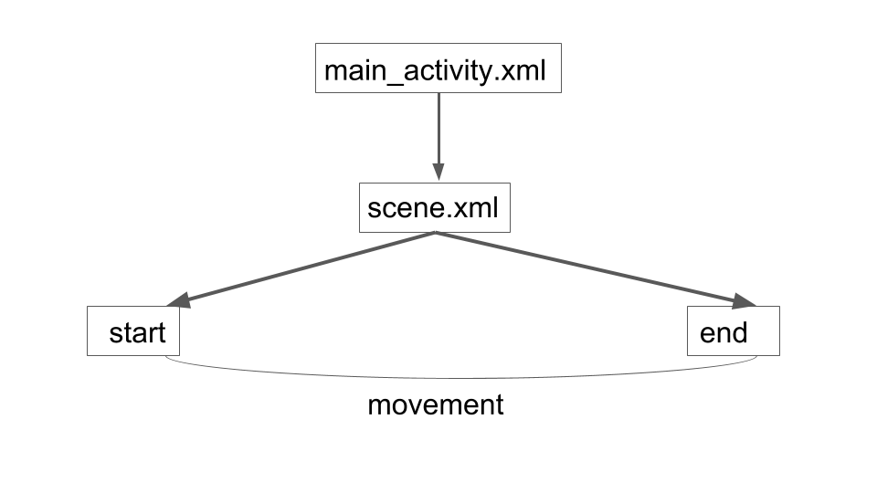 MotionScene is the entity describing the animation. in your case, you'll make a transition from point A to point B on the screen, with a duration of 1 second.